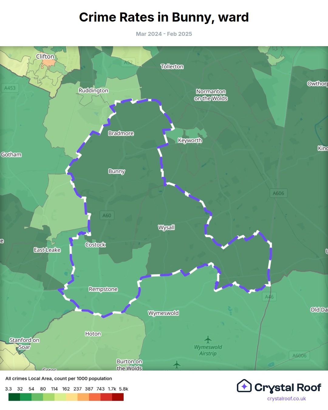 Bunny, (ward) includes areas with the following crime ratings (see map):