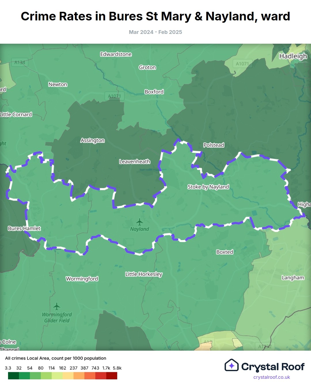 Bures St Mary & Nayland, (ward) includes areas with the following crime ratings (see map):