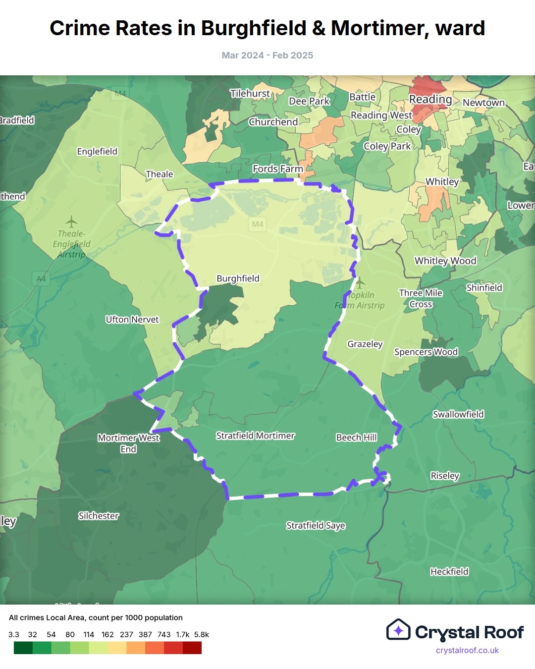 Burghfield & Mortimer, (ward) includes areas with the following crime ratings (see map):