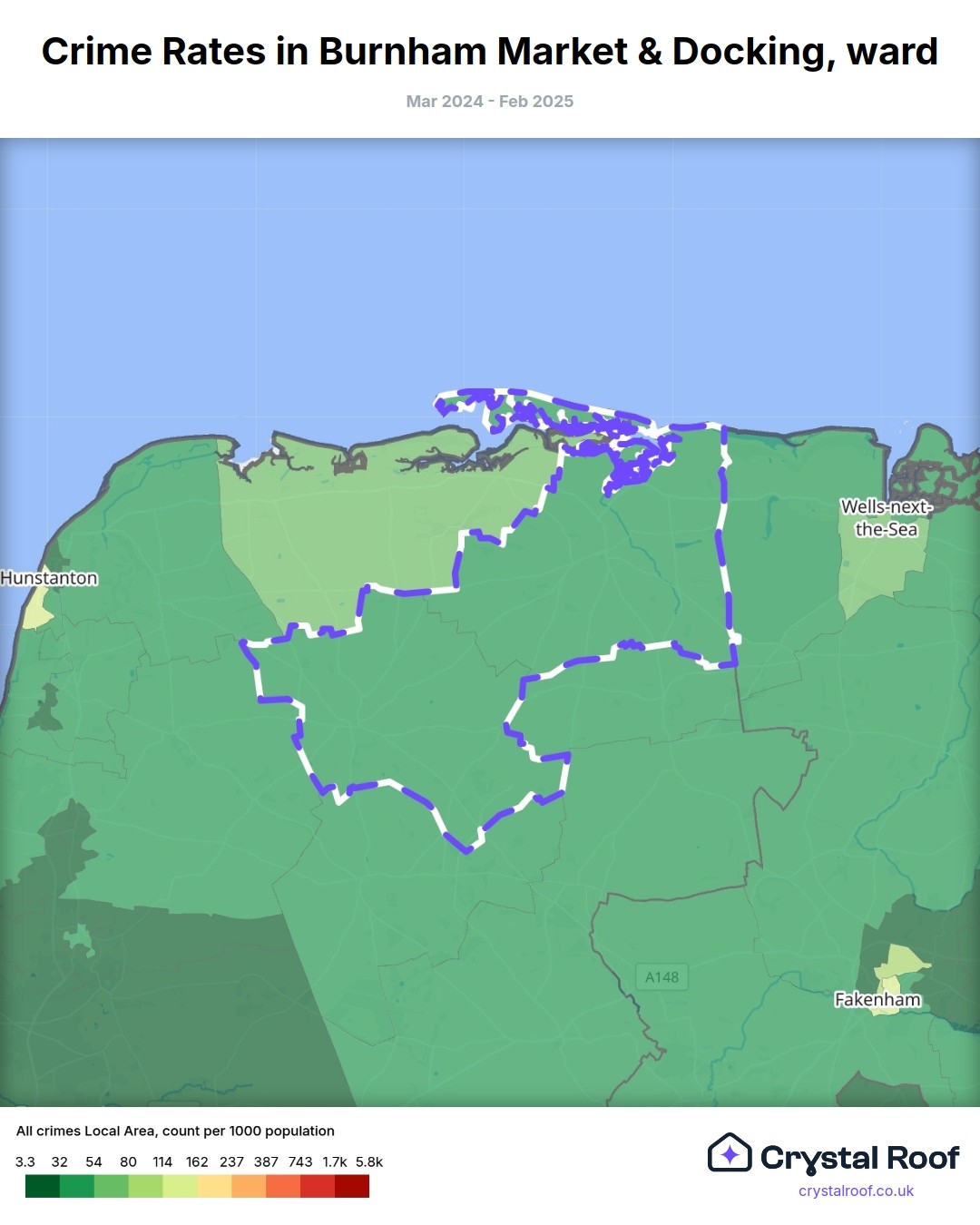 Burnham Market & Docking, (ward) includes areas with the following crime ratings (see map):