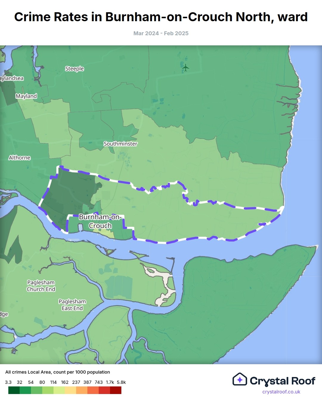 Burnham-on-Crouch North, (ward) includes areas with the following crime ratings (see map):