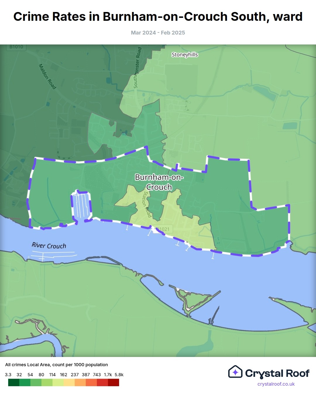 Burnham-on-Crouch South, (ward) includes areas with the following crime ratings (see map):