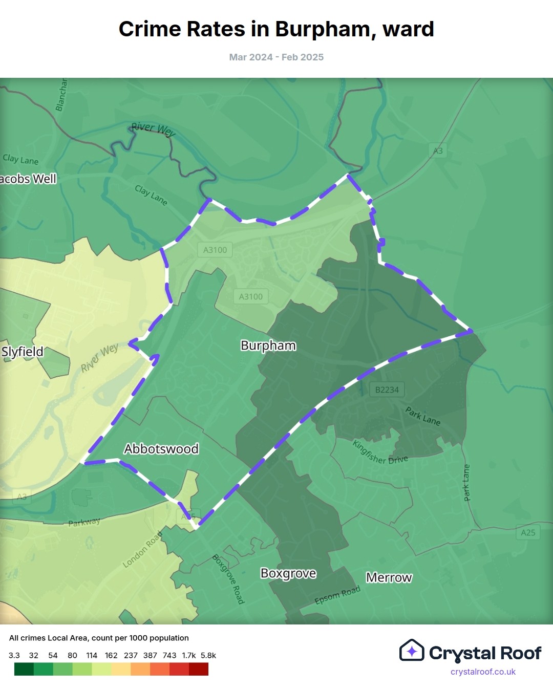 Burpham, (ward) includes areas with the following crime ratings (see map):