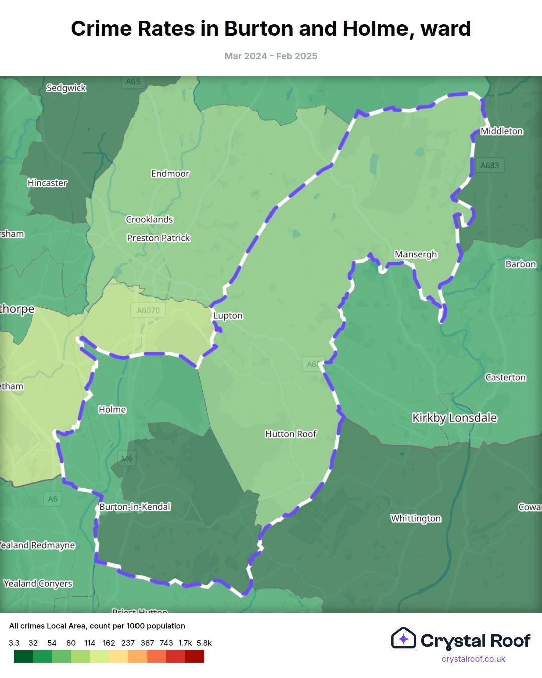 Burton and Holme, (ward) includes areas with the following crime ratings (see map):