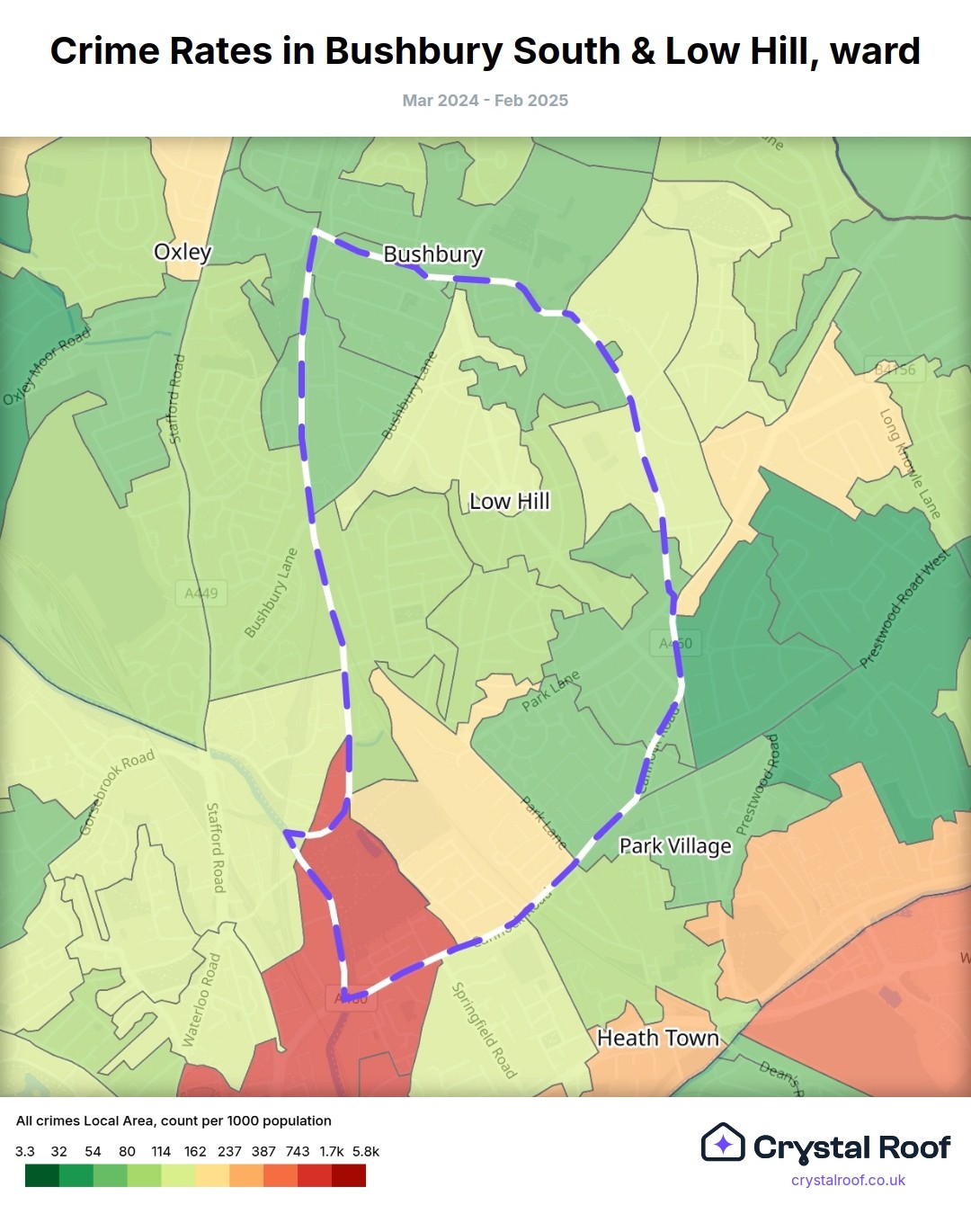 Bushbury South & Low Hill, (ward) includes areas with the following crime ratings (see map):