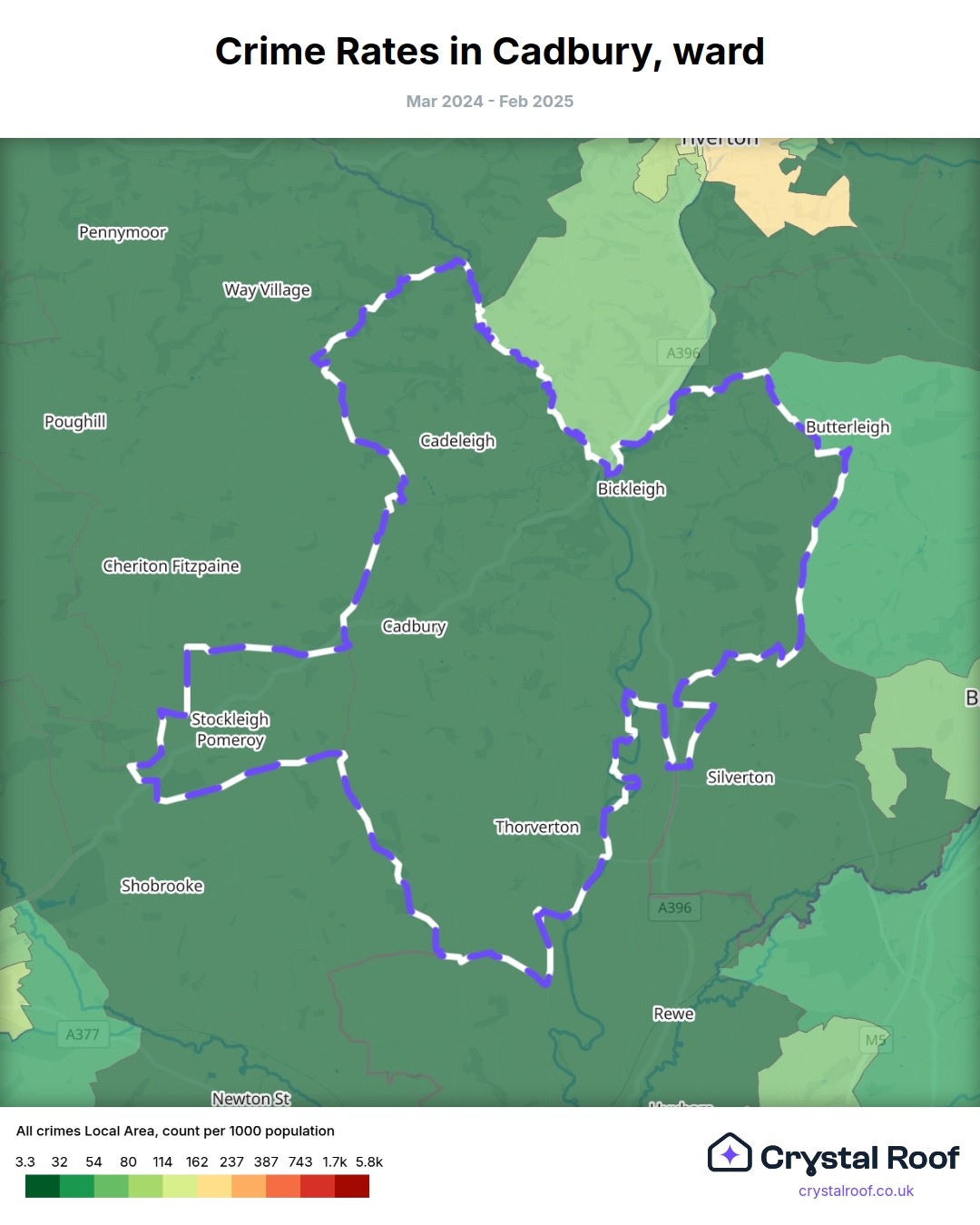 Cadbury, (ward) includes areas with the following crime ratings (see map):