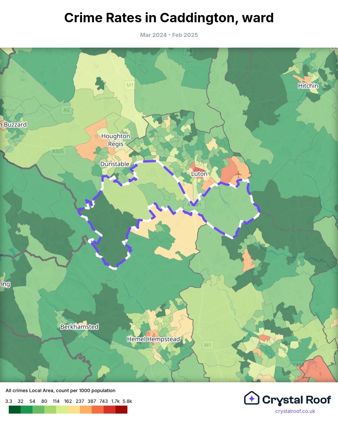 Caddington, (ward) includes areas with the following crime ratings (see map):