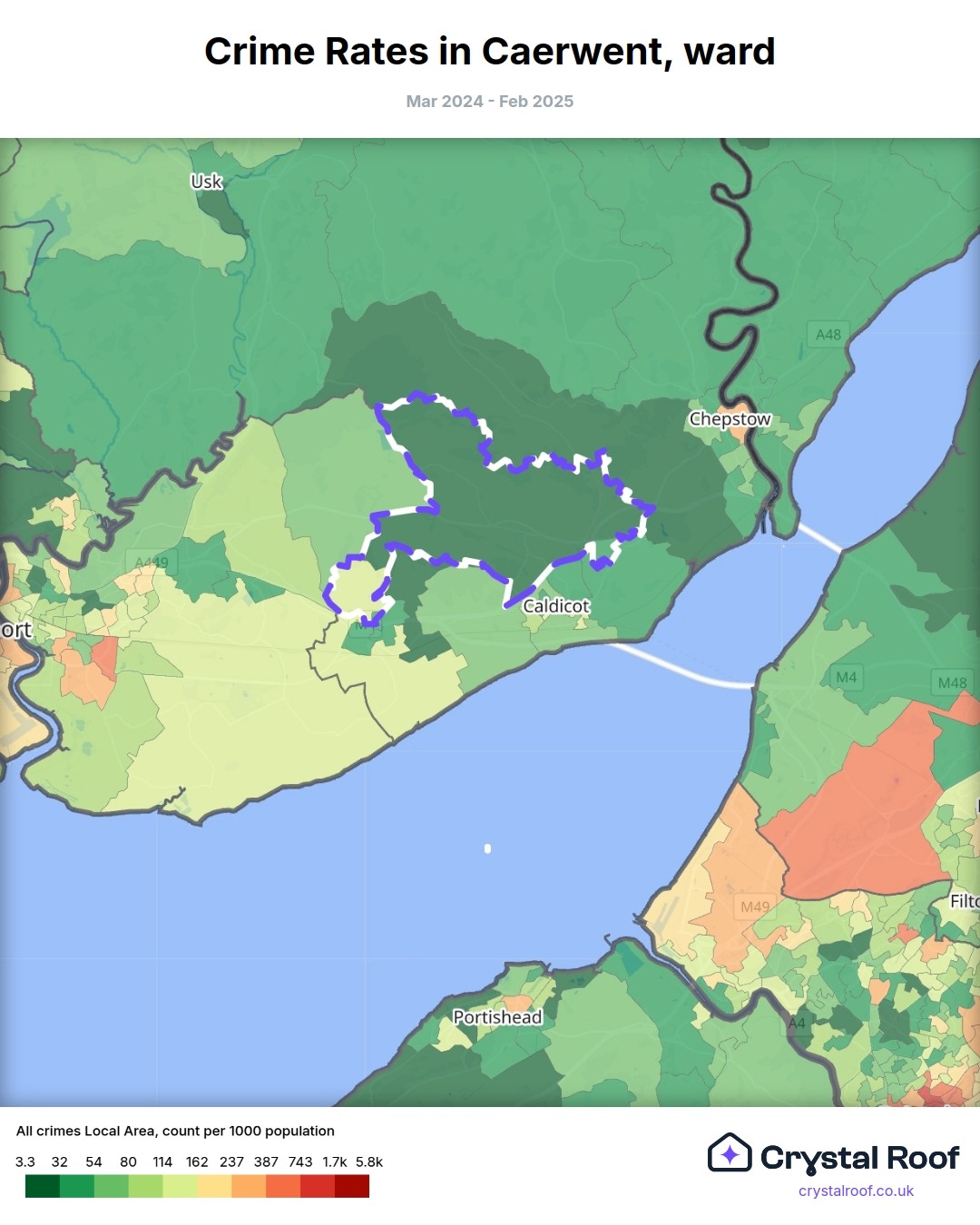 Caerwent, (ward) includes areas with the following crime ratings (see map):