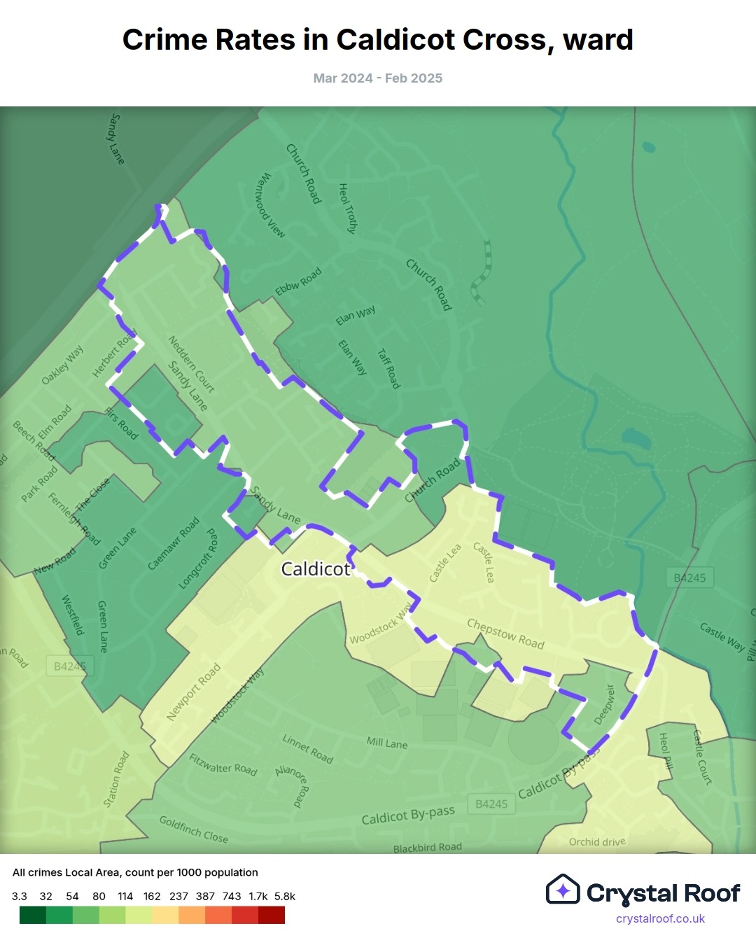 Caldicot Cross, (ward) includes areas with the following crime ratings (see map):