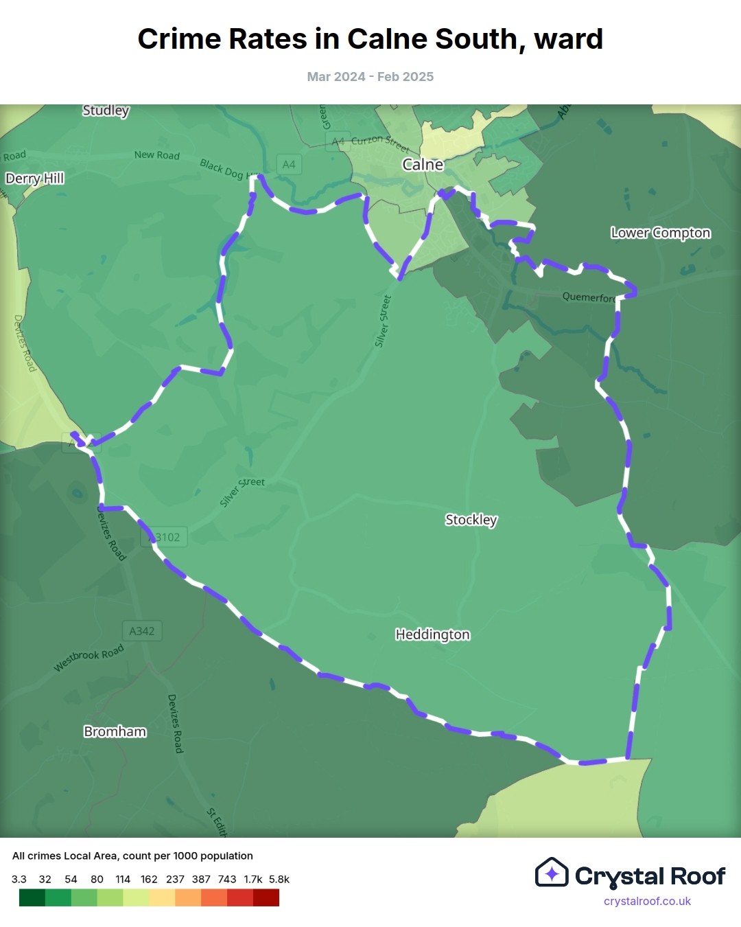Calne South, (ward) includes areas with the following crime ratings (see map):