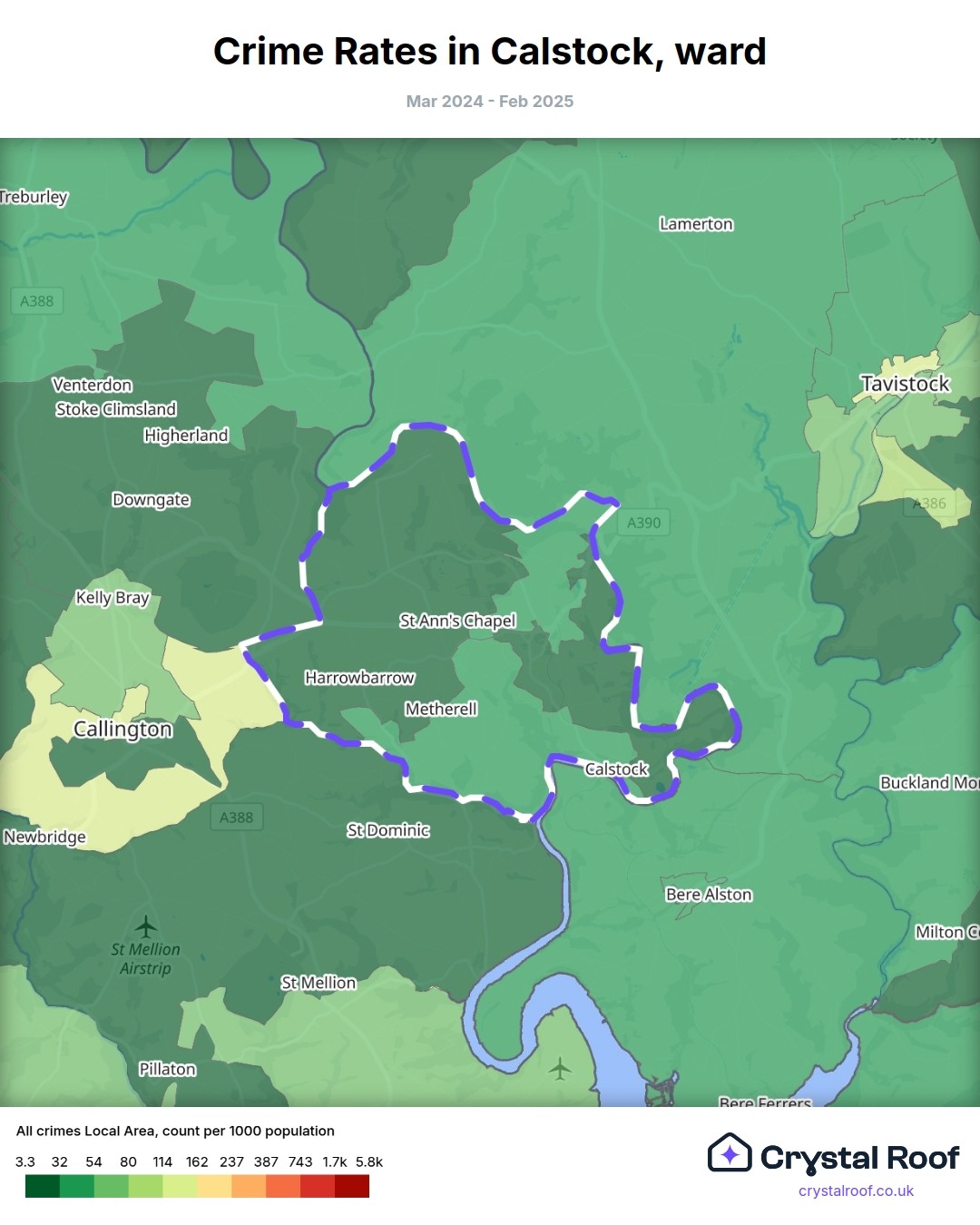 Calstock, (ward) includes areas with the following crime ratings (see map):