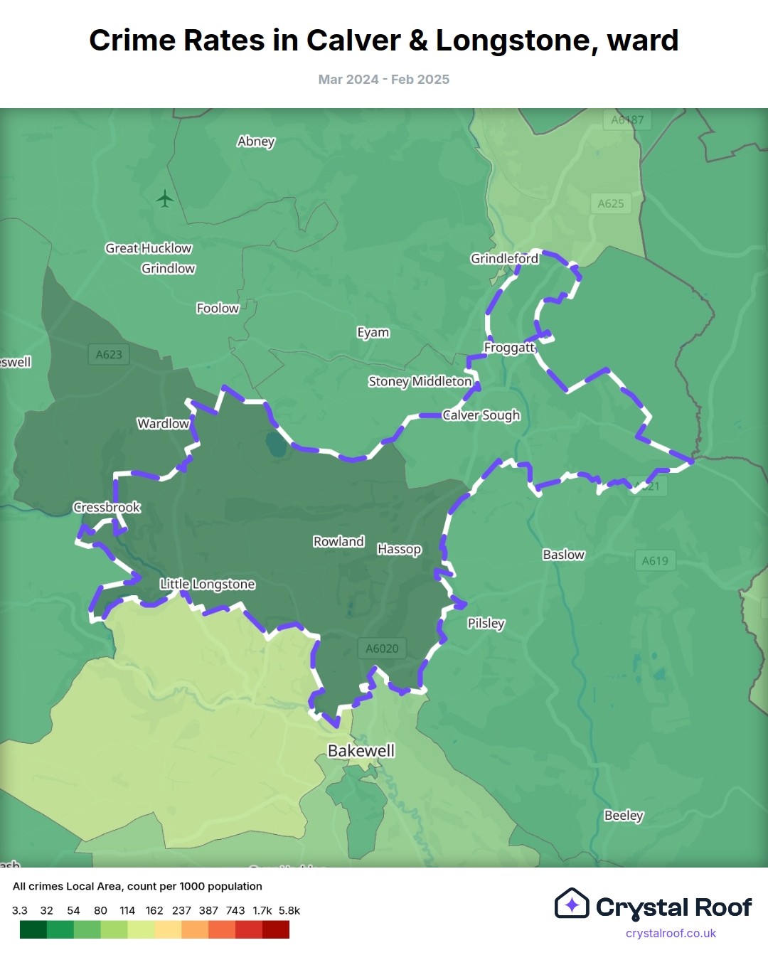 Calver & Longstone, (ward) includes areas with the following crime ratings (see map):