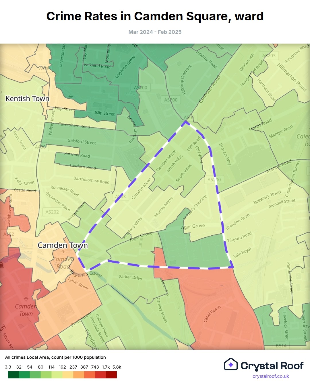 Camden Square, (ward) includes areas with the following crime ratings (see map):