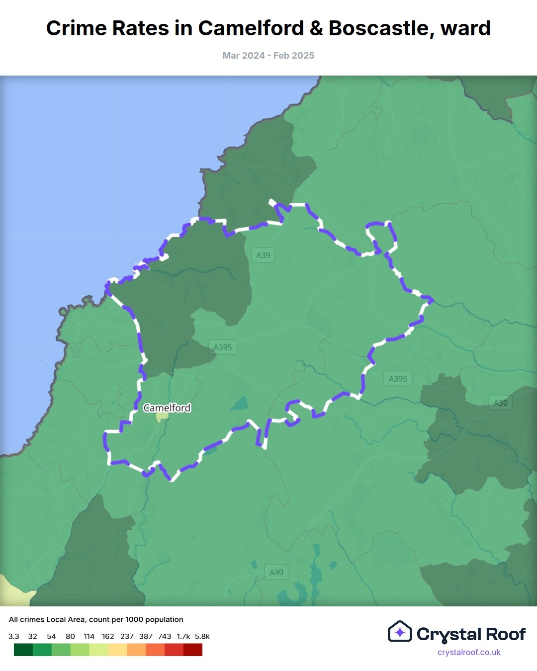 Camelford & Boscastle, (ward) includes areas with the following crime ratings (see map):
