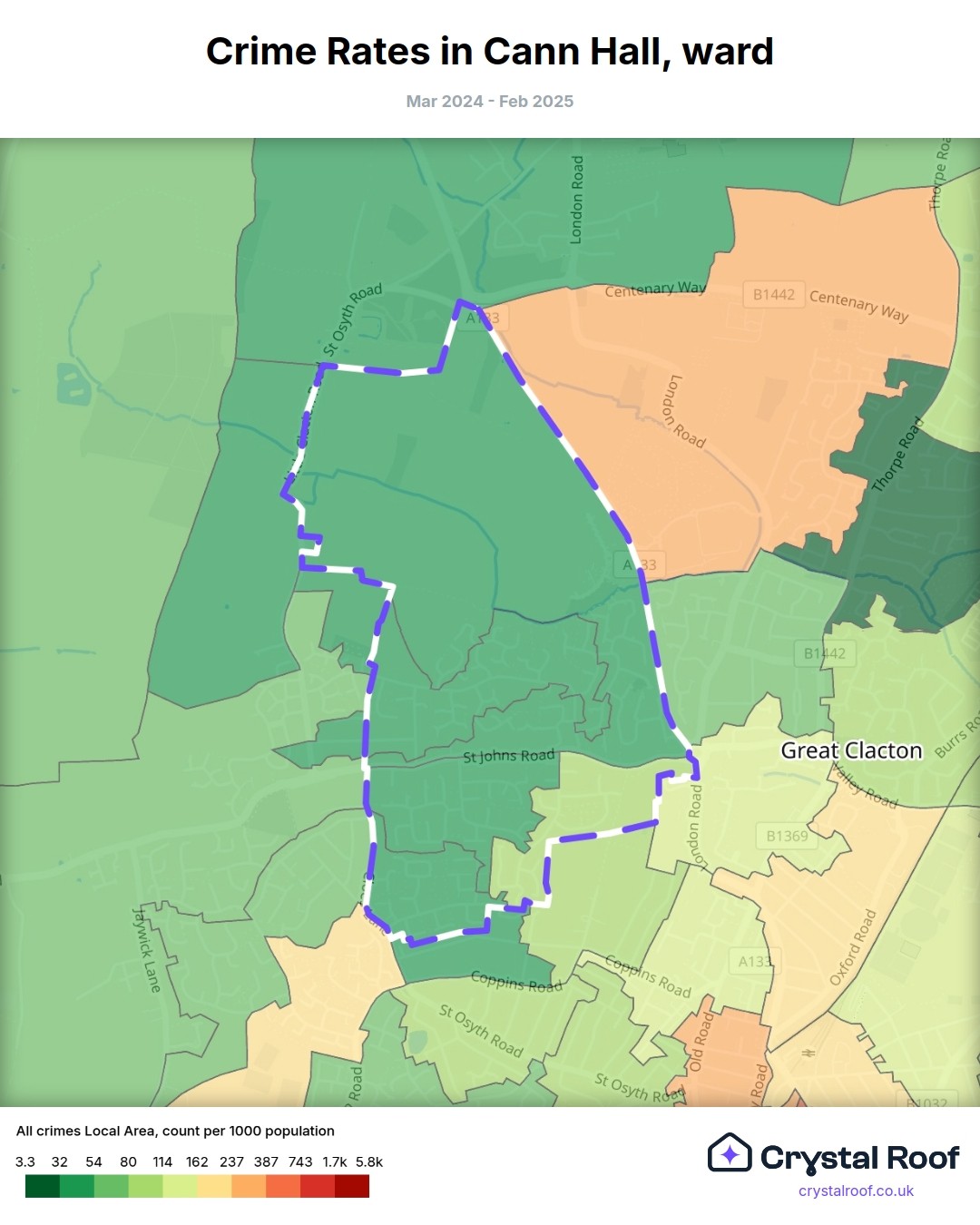 Cann Hall, (ward) includes areas with the following crime ratings (see map):