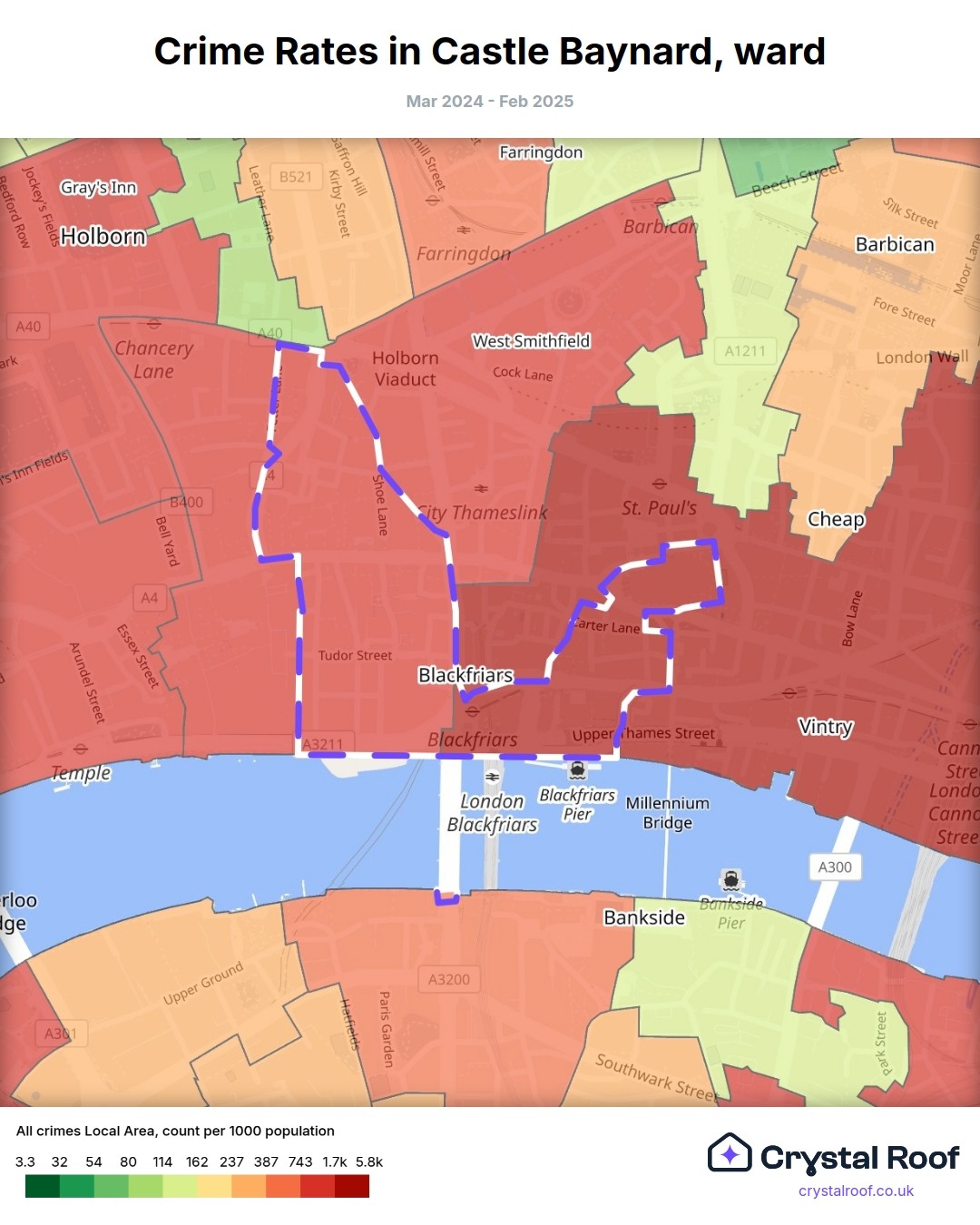 Castle Baynard, (ward) includes areas with the following crime ratings (see map):