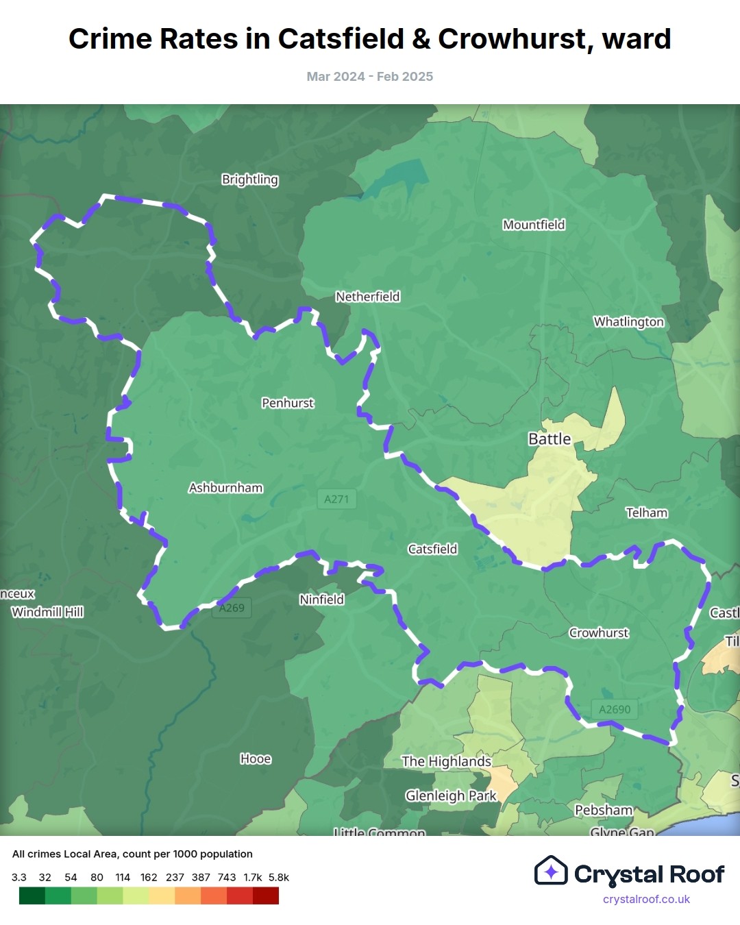 Catsfield & Crowhurst, (ward) includes areas with the following crime ratings (see map):