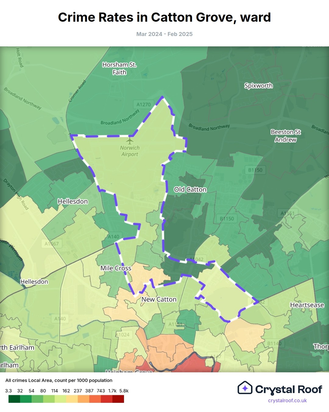Catton Grove, (ward) includes areas with the following crime ratings (see map):