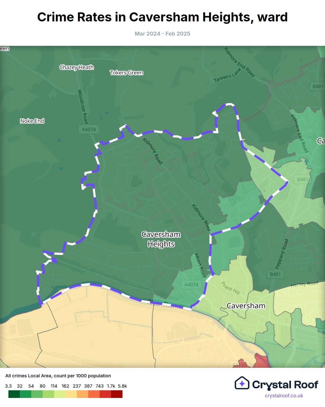 Caversham Heights, (ward) includes areas with the following crime ratings (see map):