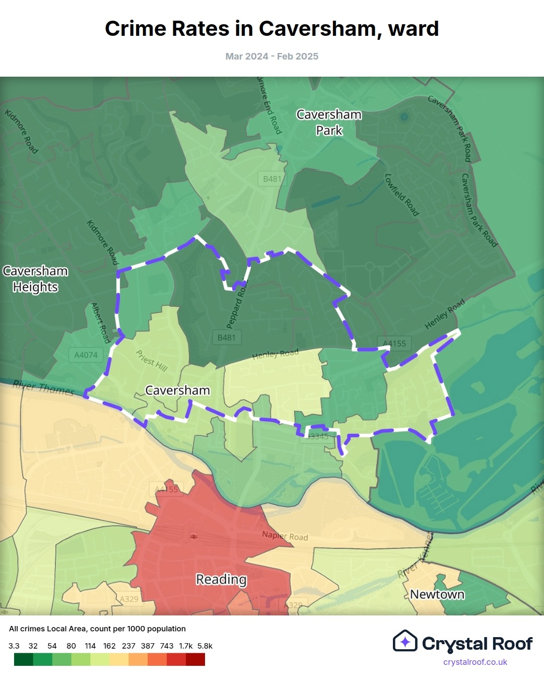 Caversham, (ward) includes areas with the following crime ratings (see map):