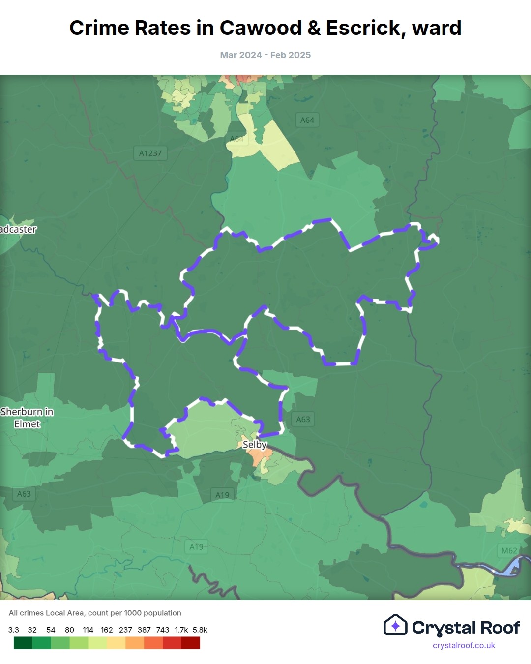Cawood & Escrick, (ward) includes areas with the following crime ratings (see map):
