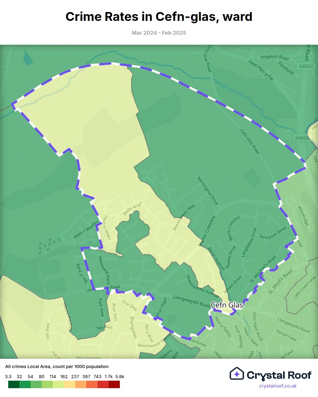 Cefn-glas, (ward) includes areas with the following crime ratings (see map):