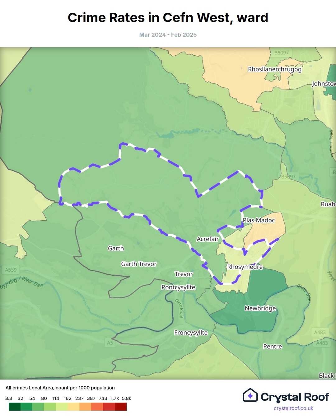 Cefn West, (ward) includes areas with the following crime ratings (see map):
