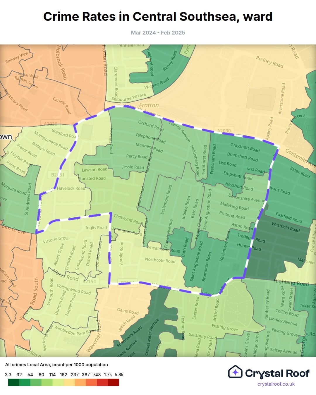 Central Southsea, (ward) includes areas with the following crime ratings (see map):