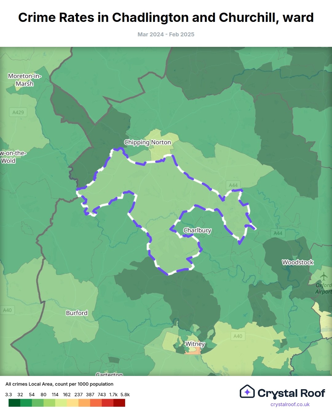 Chadlington and Churchill, (ward) includes areas with the following crime ratings (see map):