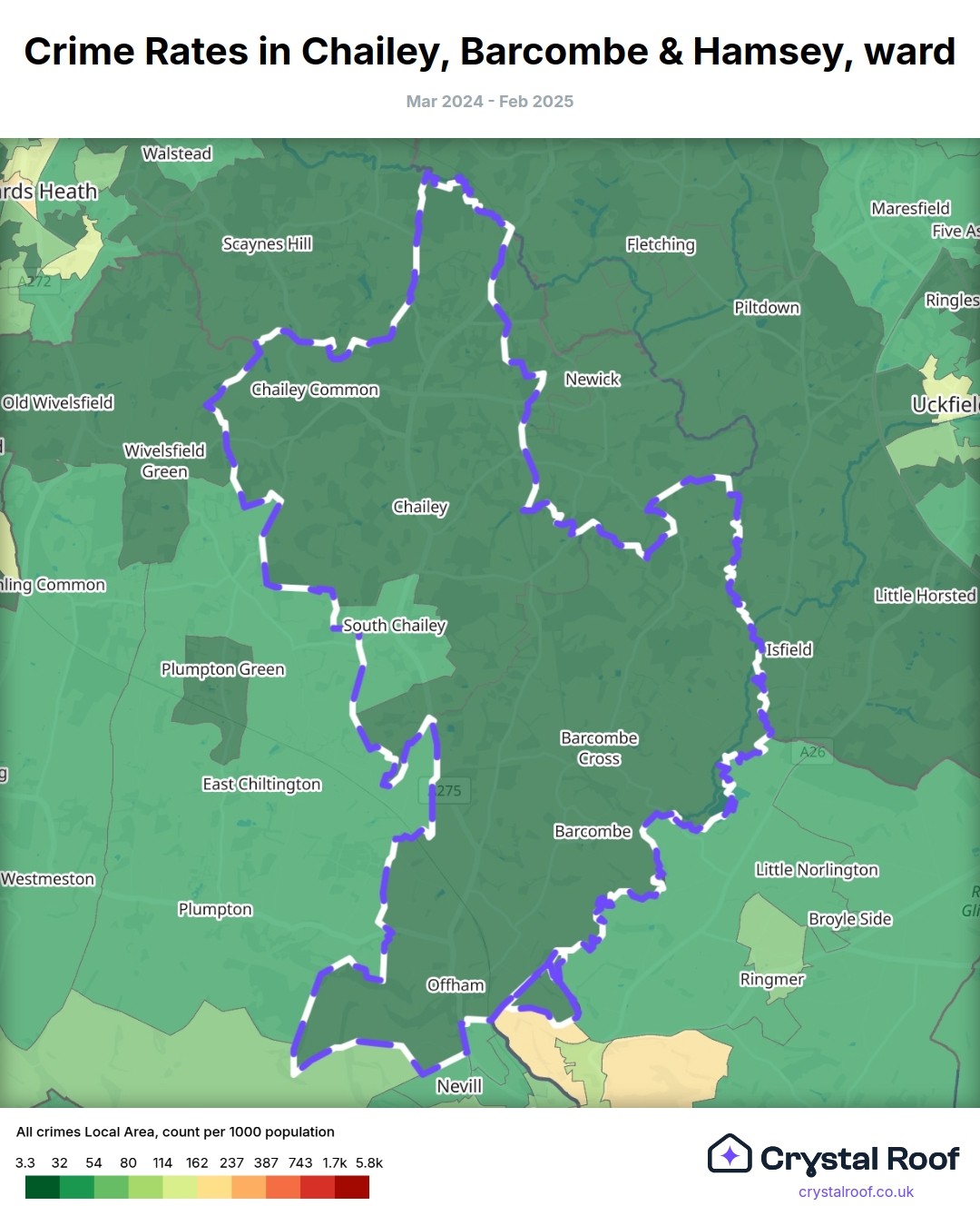 Chailey, Barcombe & Hamsey, (ward) includes areas with the following crime ratings (see map):