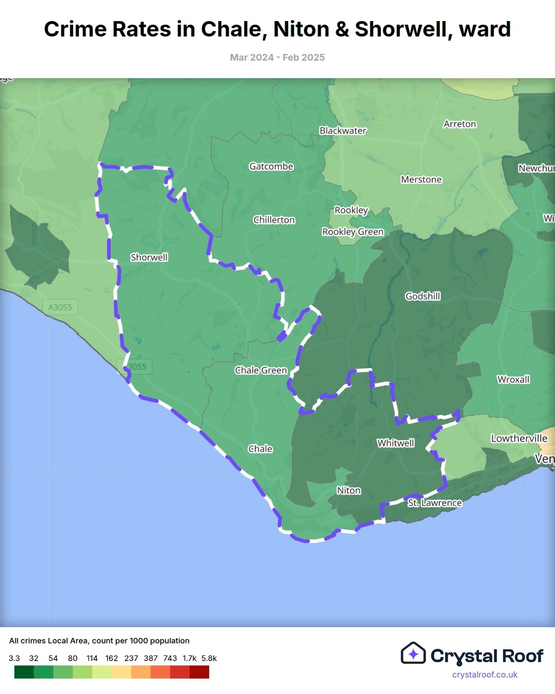 Chale, Niton & Shorwell, (ward) includes areas with the following crime ratings (see map):
