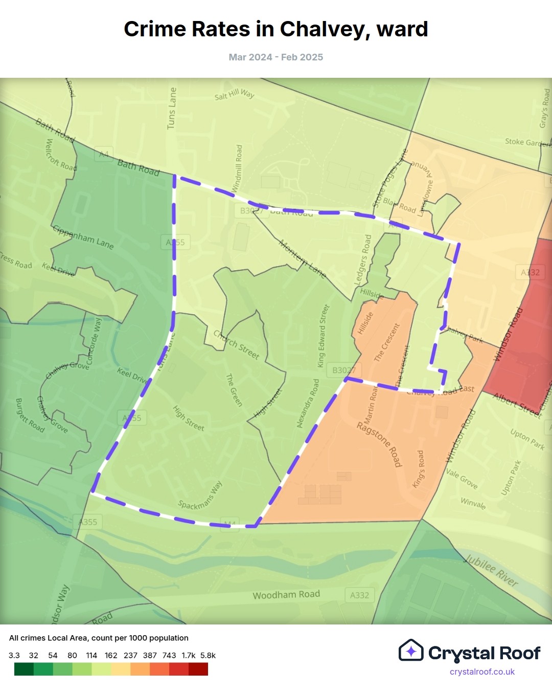 Chalvey, (ward) includes areas with the following crime ratings (see map):