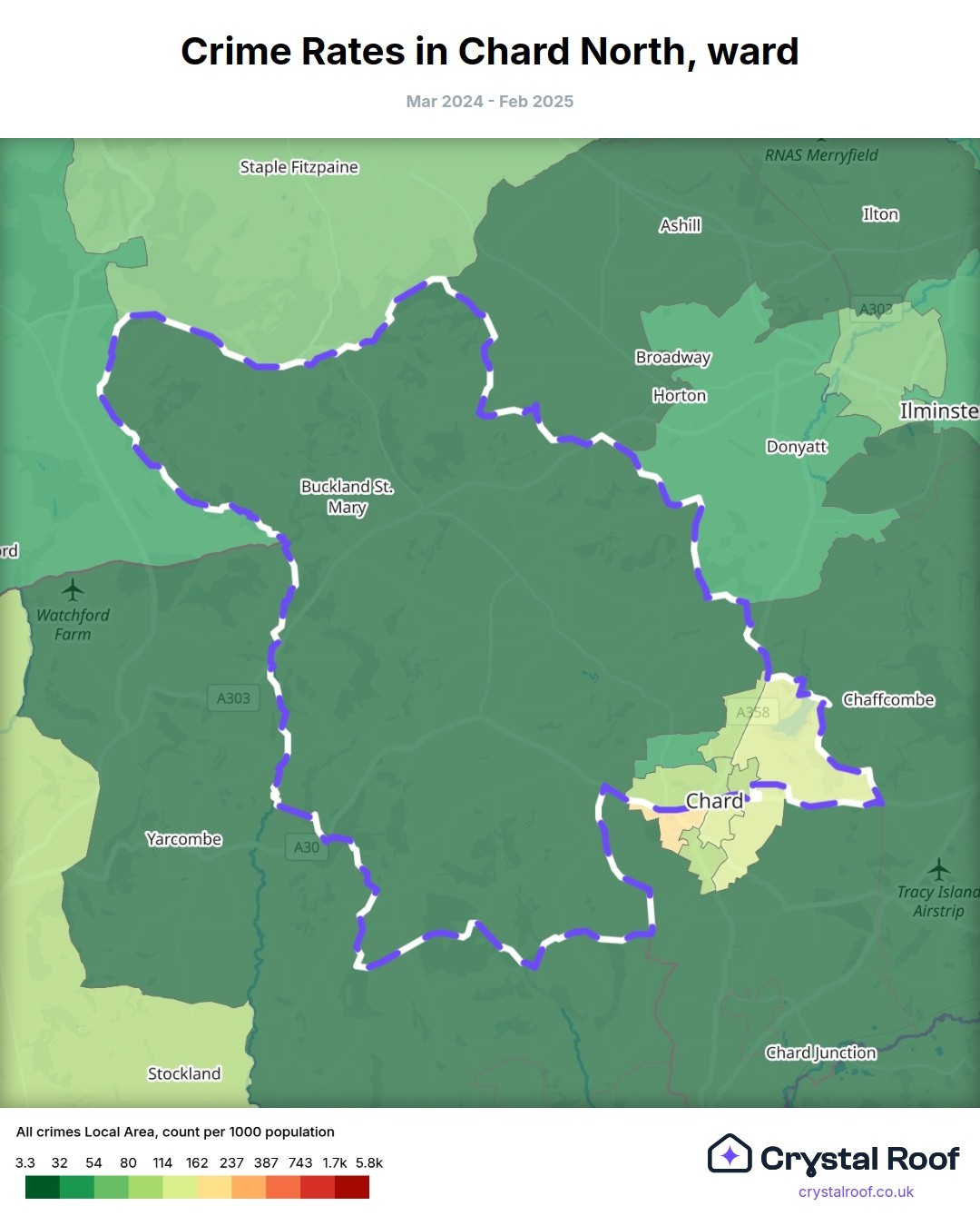 Chard North, (ward) includes areas with the following crime ratings (see map):