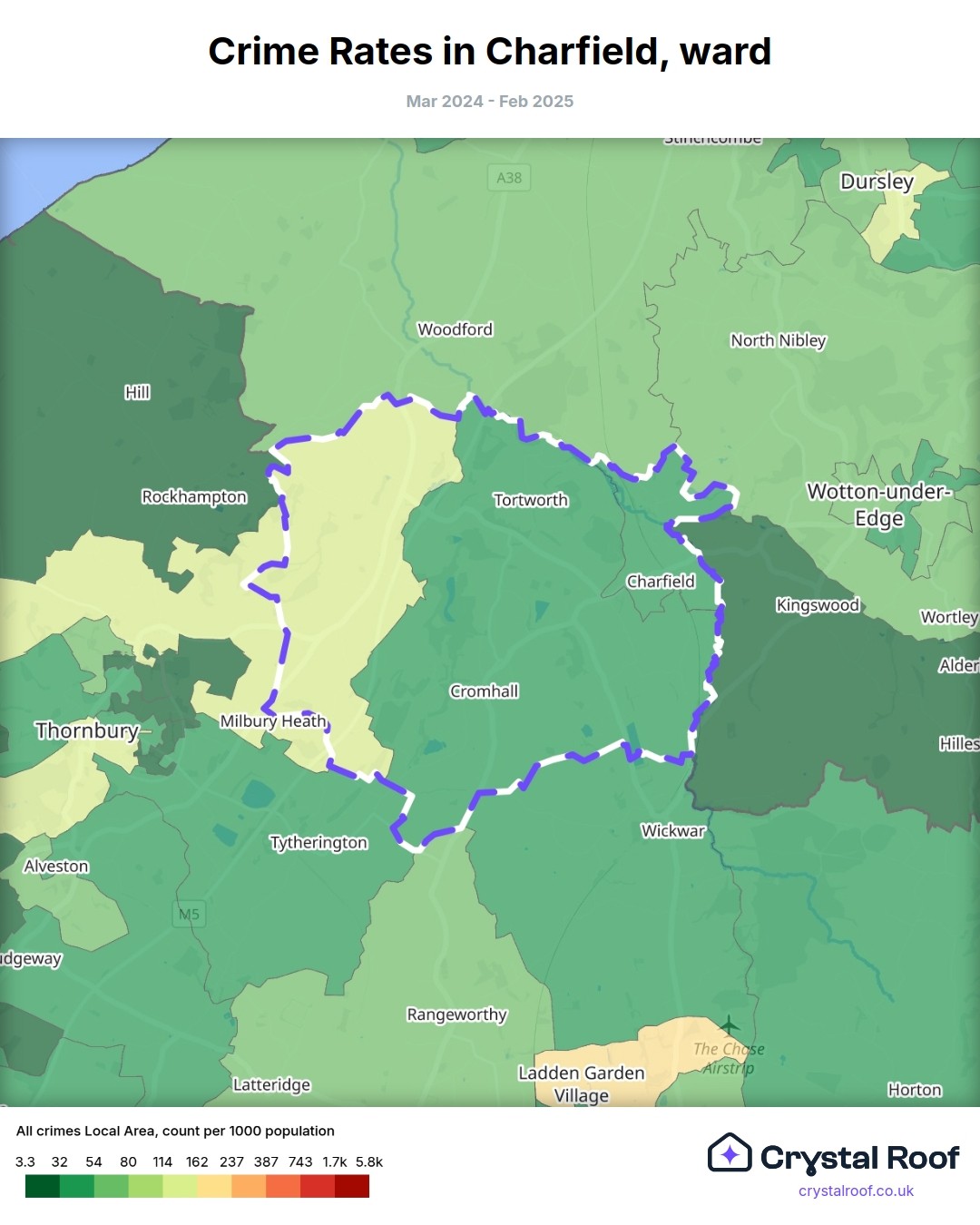 Charfield, (ward) includes areas with the following crime ratings (see map):