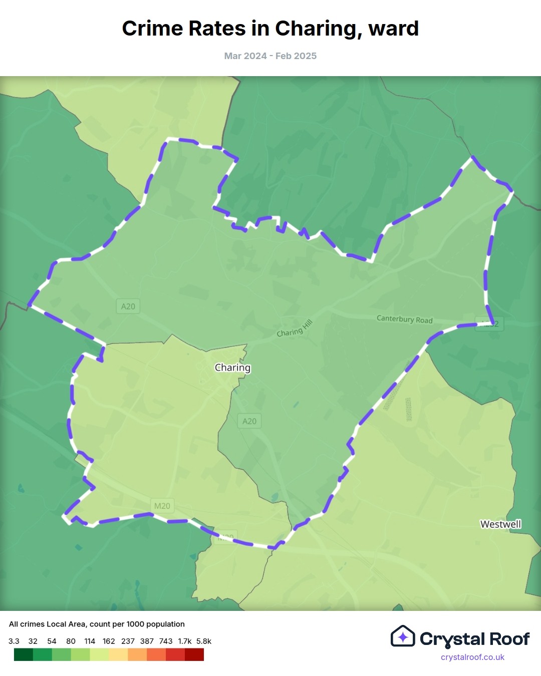 Charing, (ward) includes areas with the following crime ratings (see map):
