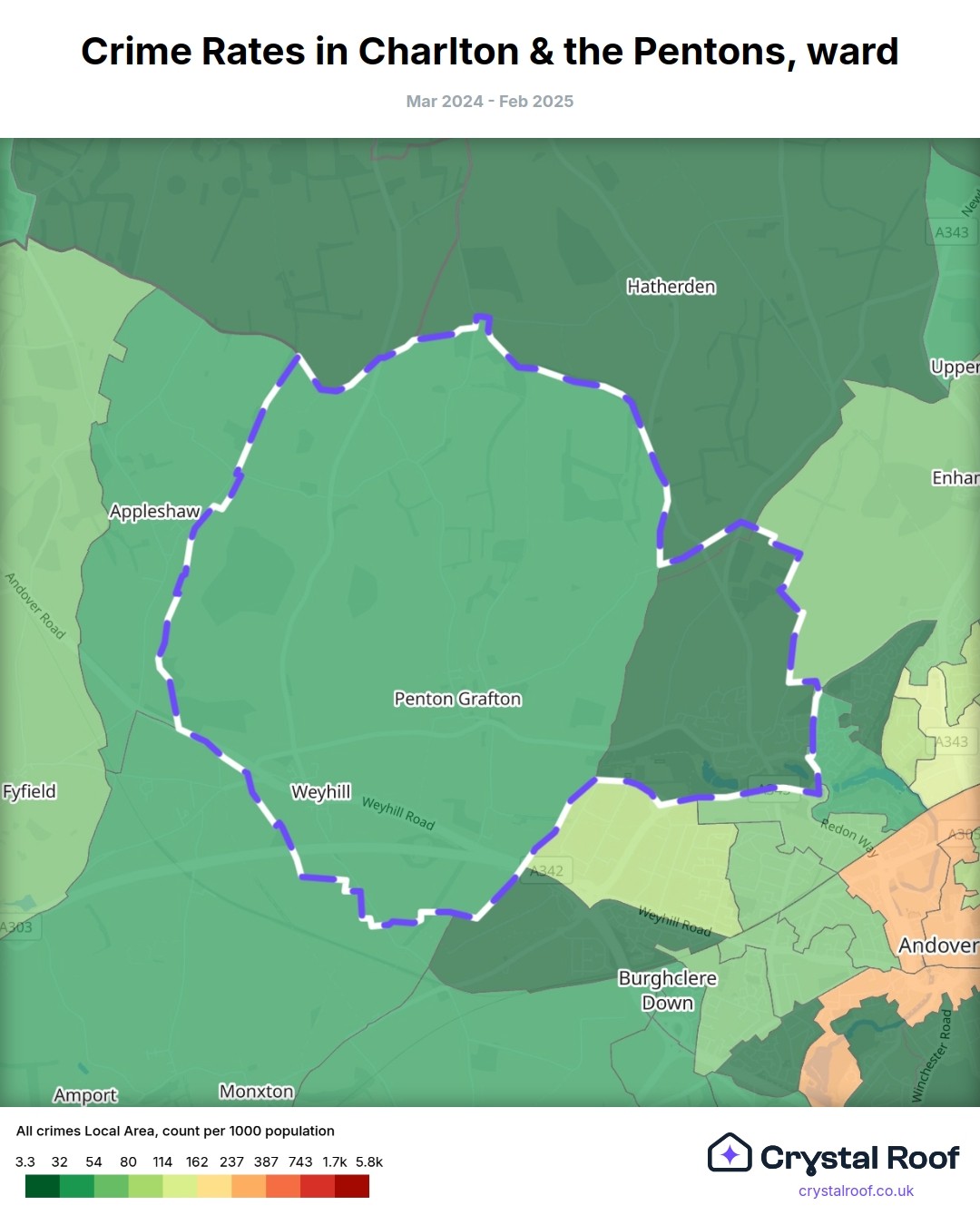 Charlton & the Pentons, (ward) includes areas with the following crime ratings (see map):