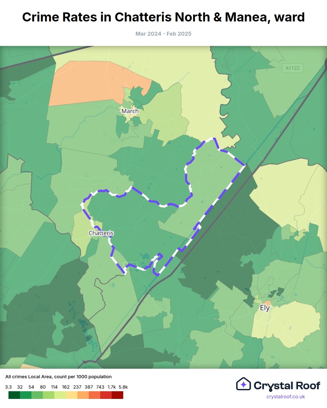 Chatteris North & Manea, (ward) includes areas with the following crime ratings (see map):