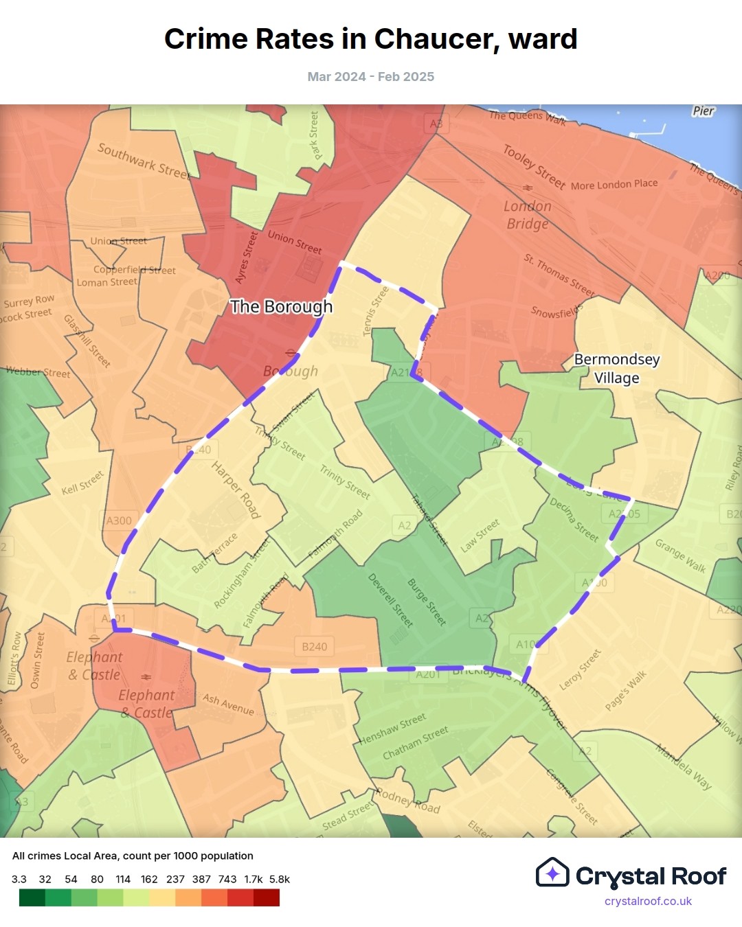 Chaucer, (ward) includes areas with the following crime ratings (see map):