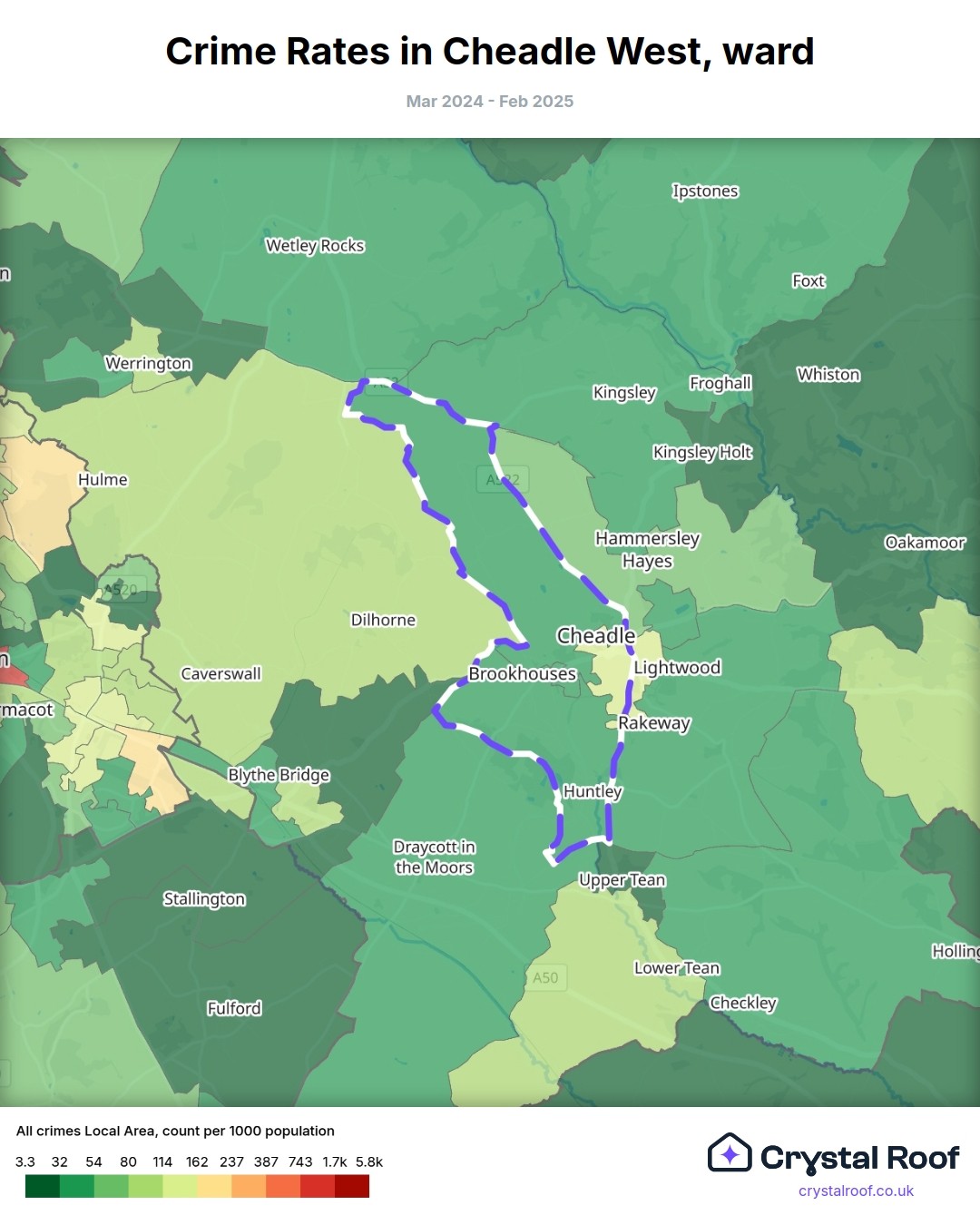 Cheadle West, (ward) includes areas with the following crime ratings (see map):