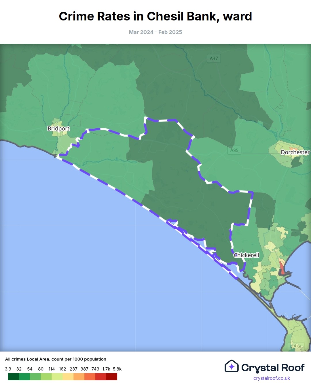 Chesil Bank, (ward) includes areas with the following crime ratings (see map):