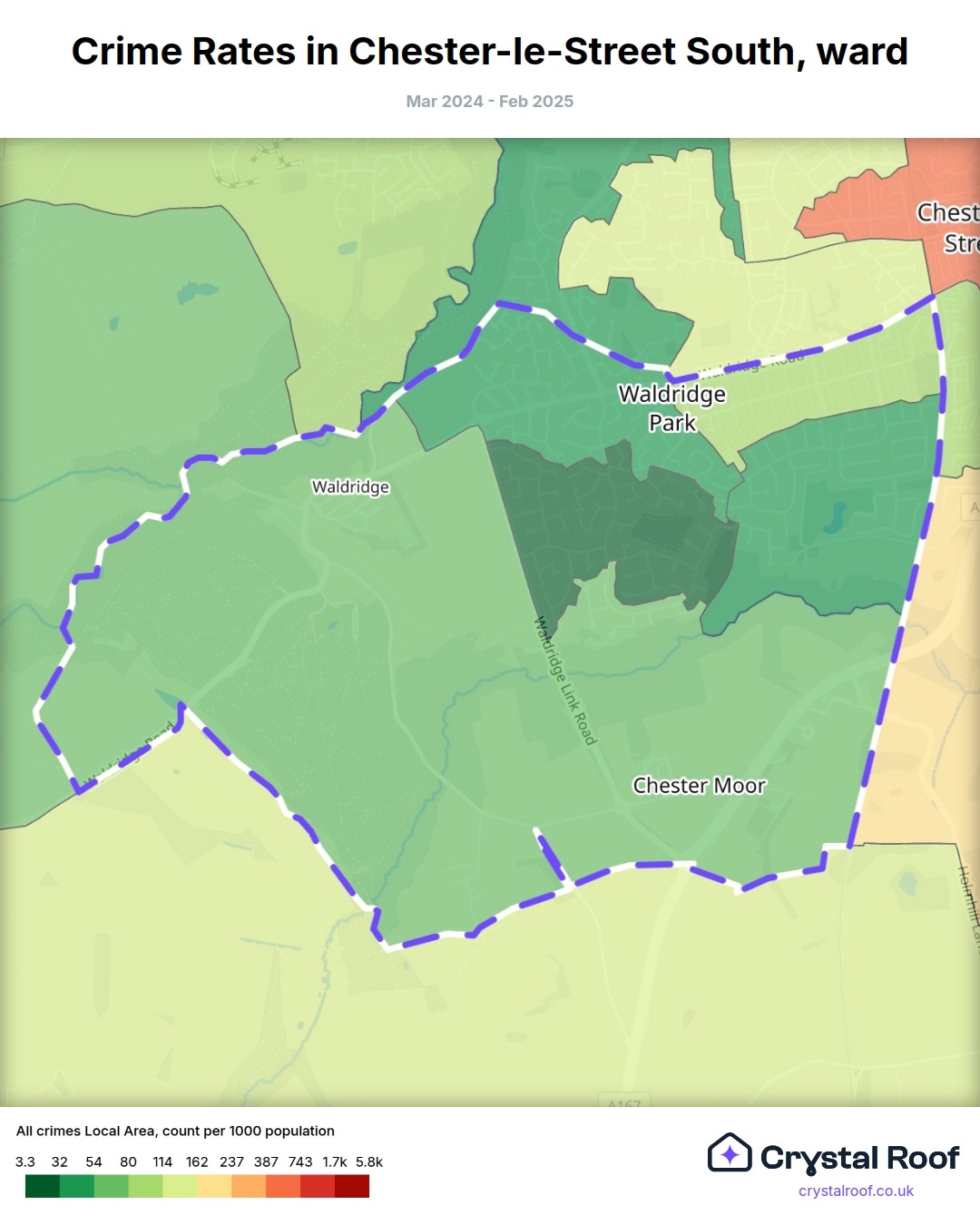 Chester-le-Street South, (ward) includes areas with the following crime ratings (see map):