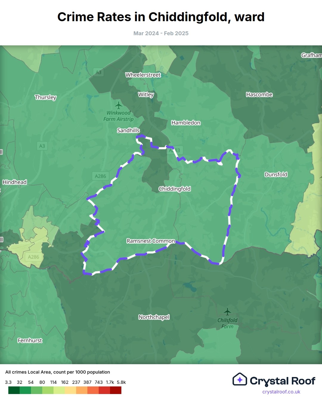 Chiddingfold, (ward) includes areas with the following crime ratings (see map):
