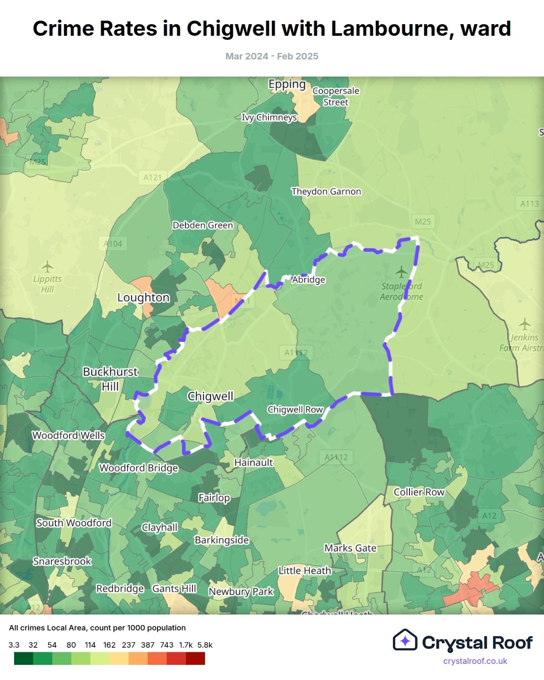 Chigwell with Lambourne, (ward) includes areas with the following crime ratings (see map):