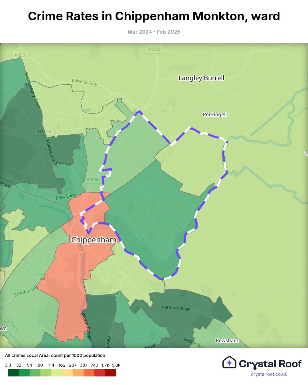 Chippenham Monkton, (ward) includes areas with the following crime ratings (see map):