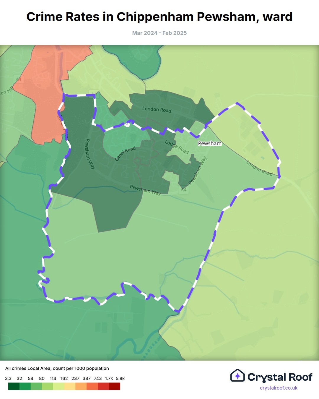 Chippenham Pewsham, (ward) includes areas with the following crime ratings (see map):