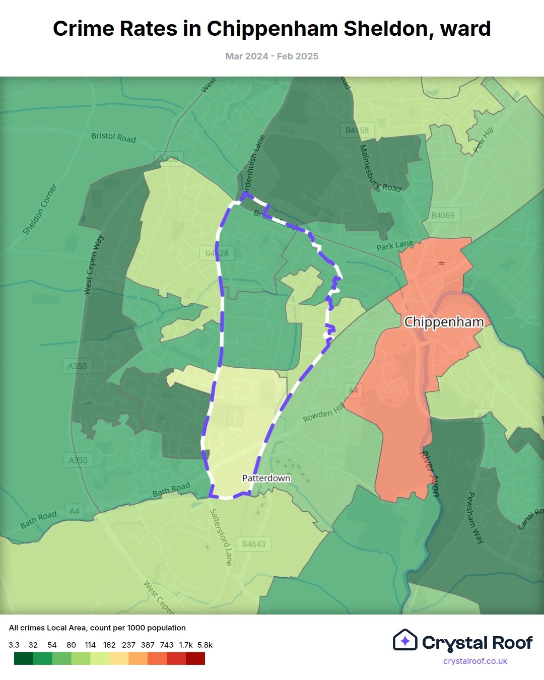 Chippenham Sheldon, (ward) includes areas with the following crime ratings (see map):