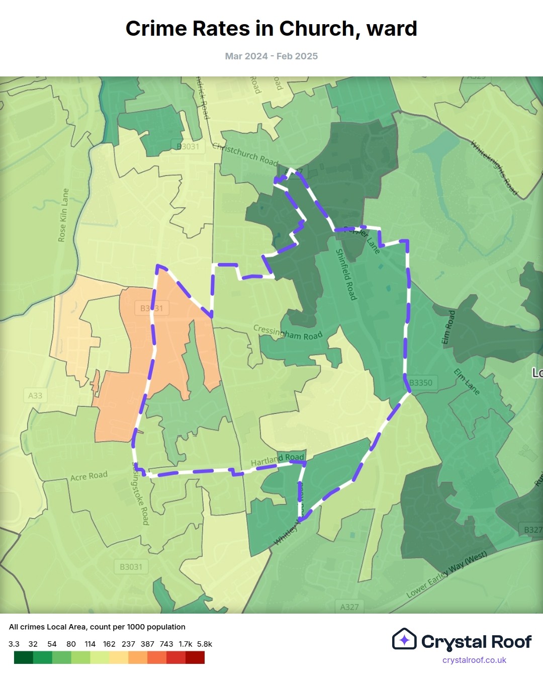 Church, (ward) includes areas with the following crime ratings (see map):