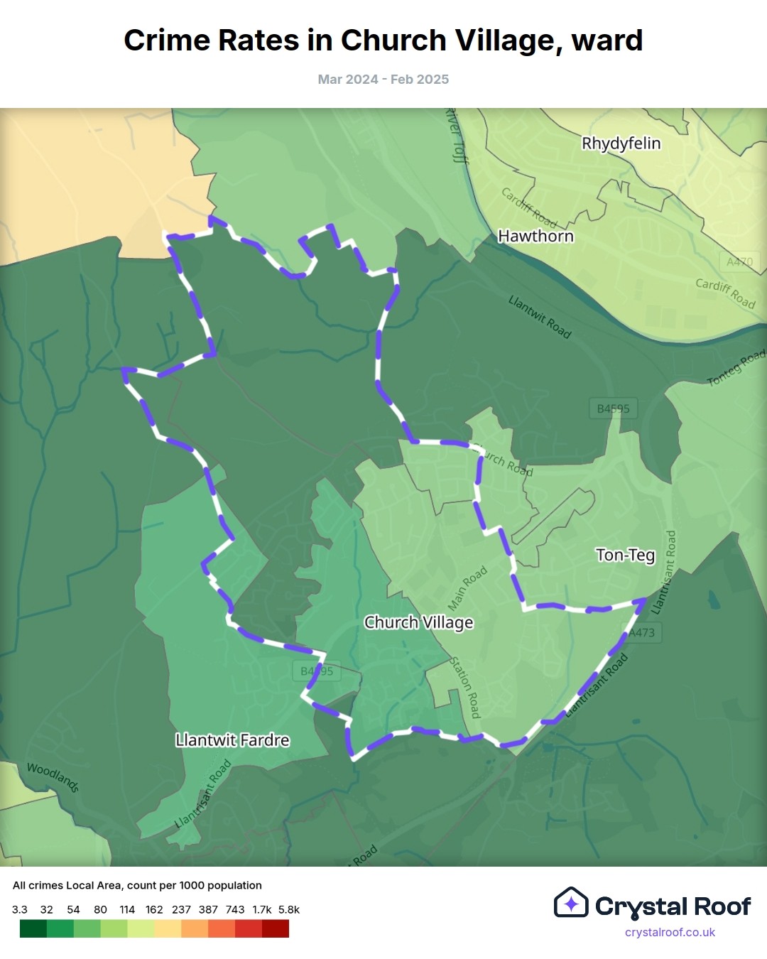Church Village, (ward) includes areas with the following crime ratings (see map):