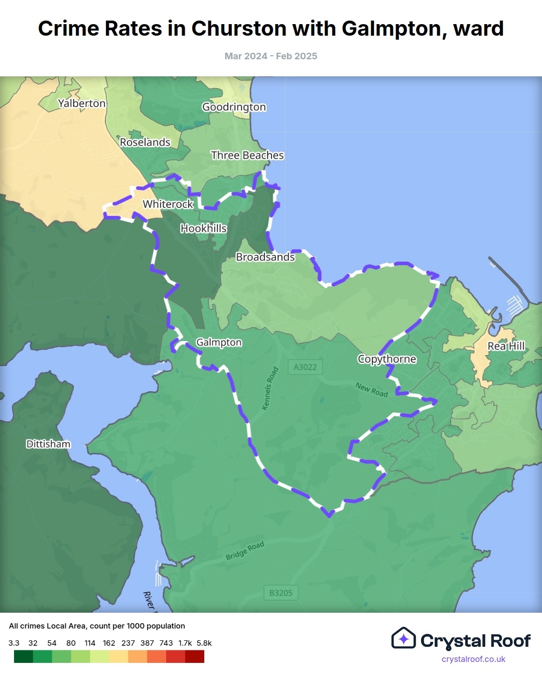 Churston with Galmpton, (ward) includes areas with the following crime ratings (see map):