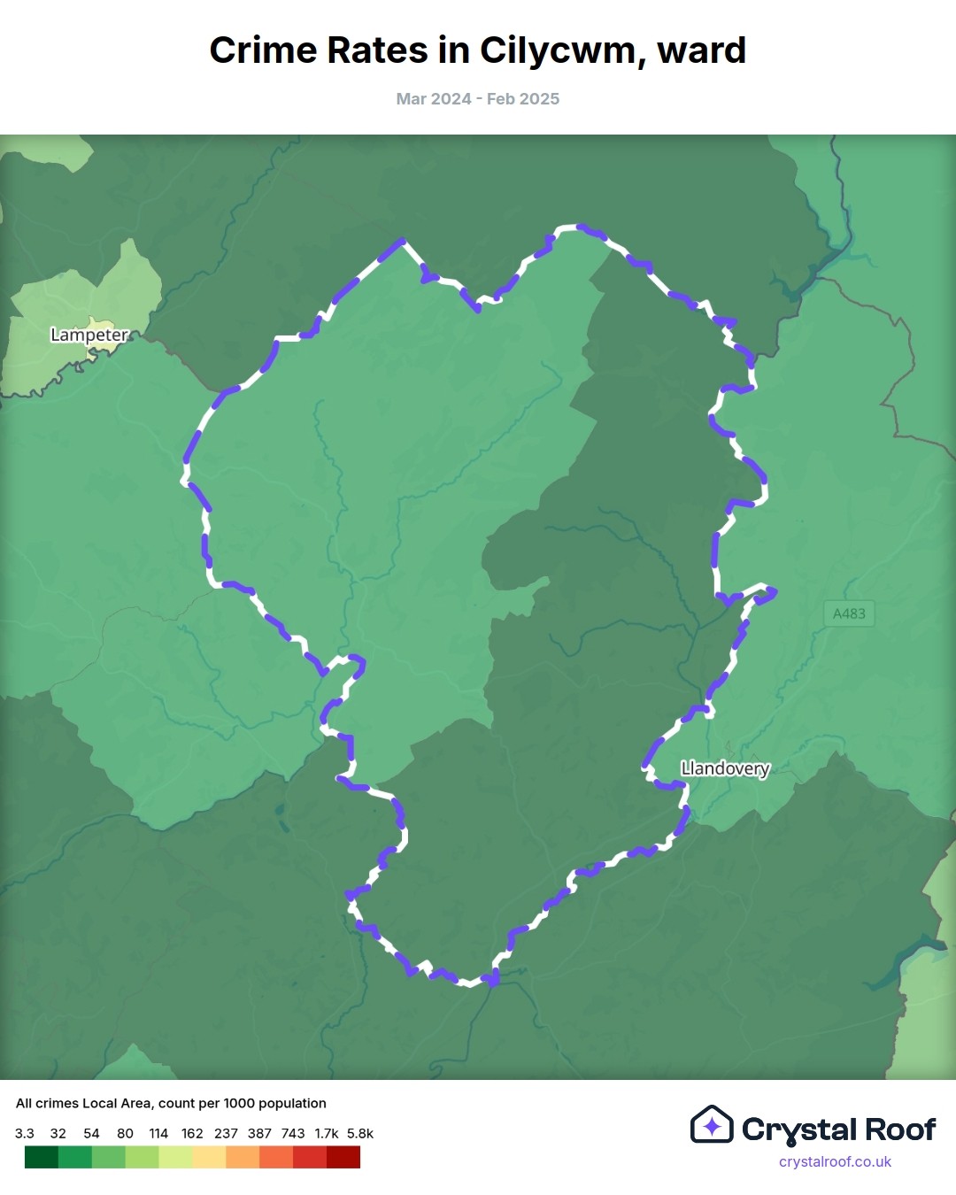 Cilycwm, (ward) includes areas with the following crime ratings (see map):